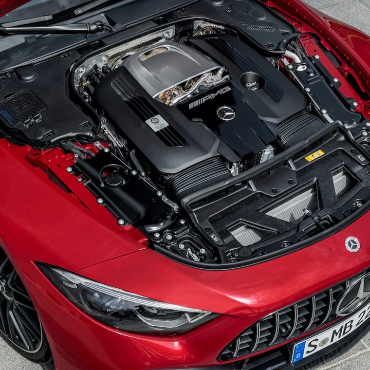 En ambos casos el motor está acoplado a una transmisión automática de nueve velocidades equipada con una función de control de lanzamiento. Mercedes dijo que en el futuro llegarán dos versiones híbridas enchufables del SL.