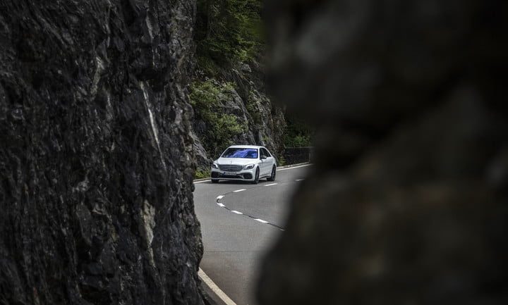El Clase S 63 4Matic + viene de serie con tracción en las cuatro ruedas, pero la configuración hecha por AMG está muy lejos de los sistemas que te encontrarás en los vehículos normales. 4Matic + es constantemente variable, lo que significa que la distribución de par entre el eje delantero y trasero no está ajustada. Esto permite que el vehículo puede enviar el 100 por ciento de su energía a la parte delantera o a la parte trasera, si es que lo estima necesario, transición que es imposible de detectar. Eso significa que el S 63 puede dividir su potencia de 603 caballos de fuerza por igual entre las cuatro ruedas para mantener la tracción, pero al momento siguiente, puede exhibir las características propias de un carro de tracción trasera. Esto es posible mediante el uso de un embrague electromagnético que se adapta constantemente a las condiciones del camino, la tracción y el comportamiento del conductor. Suena genial en el papel, pero como muchos elementos de la clase S, es incluso mejor en la práctica.