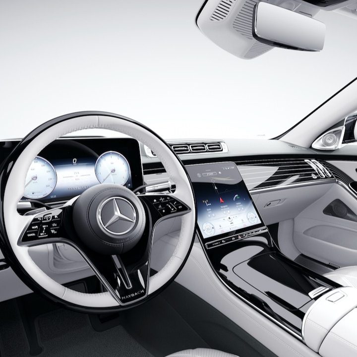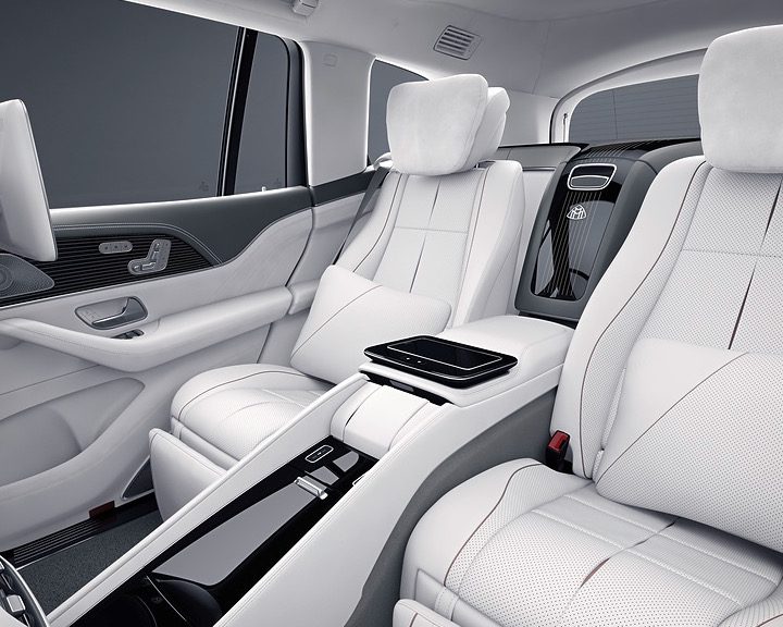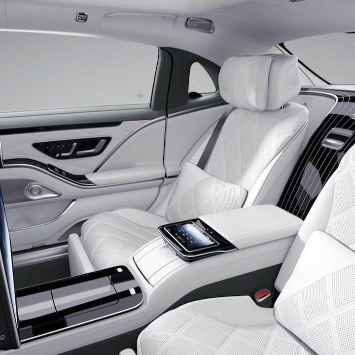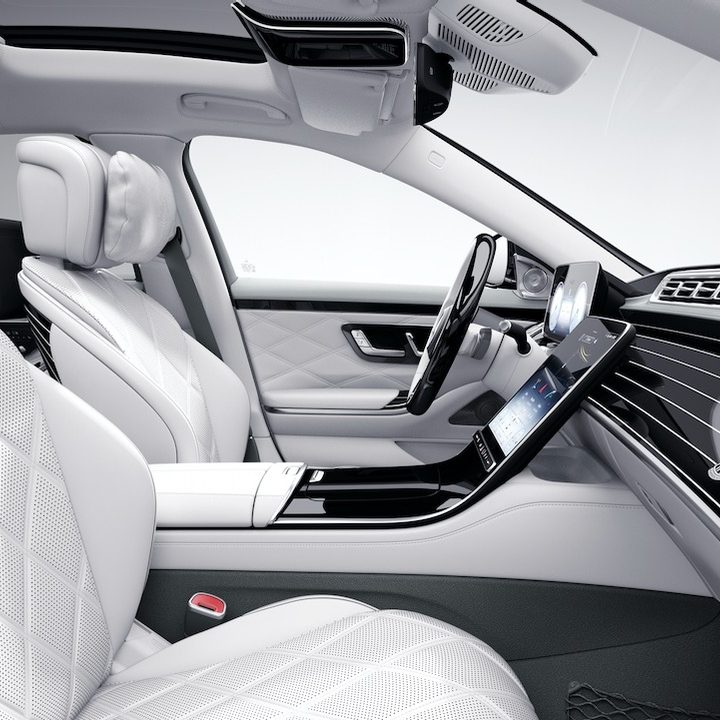 En sus enormes cabinas encontramos cuatro asientos forrados en cuero acolchado blanco Crystal y gris plata Pearl, acentos en negro brillante Piano y maderas talladas con láser. Mercedes-Maybach decidió prescindir de la megapantalla MBUX en el Clase S y mantener los instrumentos regulares para acentuar su creencia de que este es un auto que sus dueños disfrutarán en el asiento trasero.