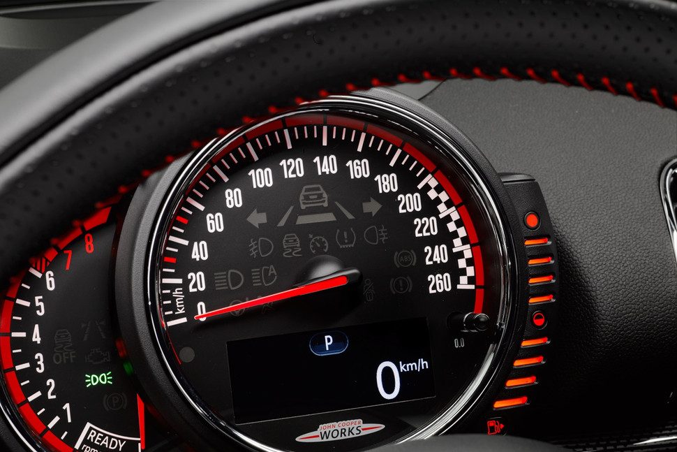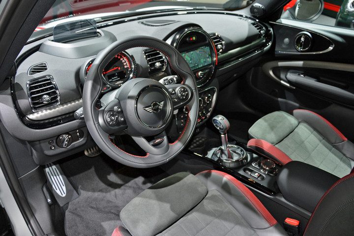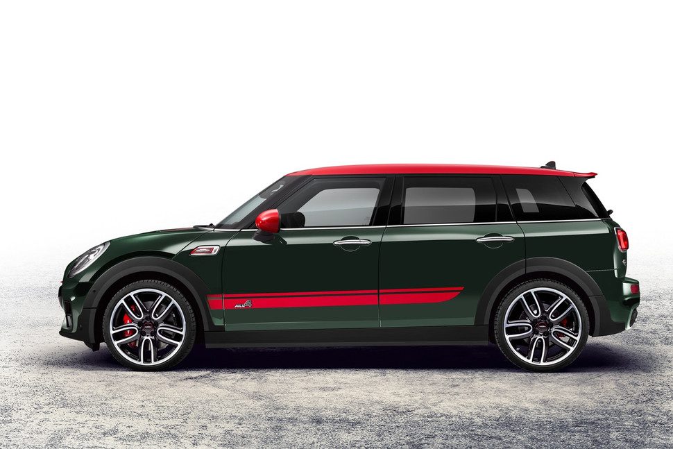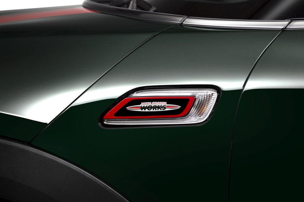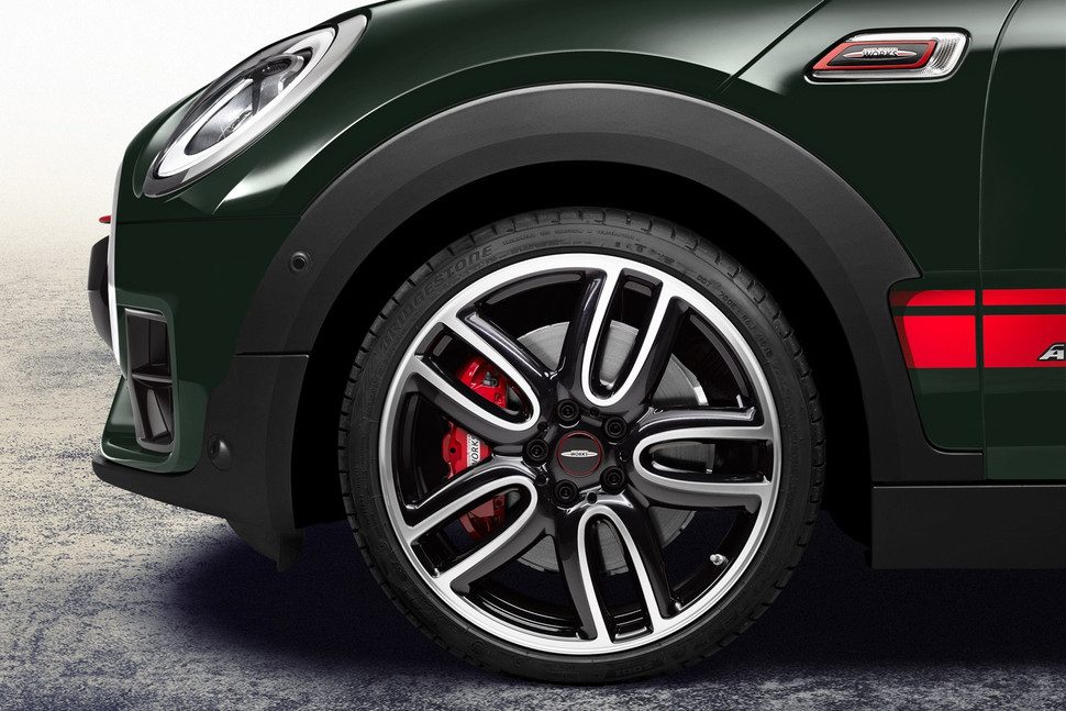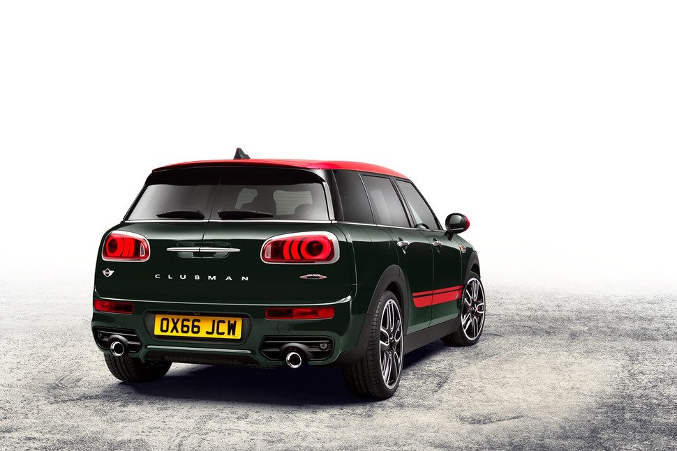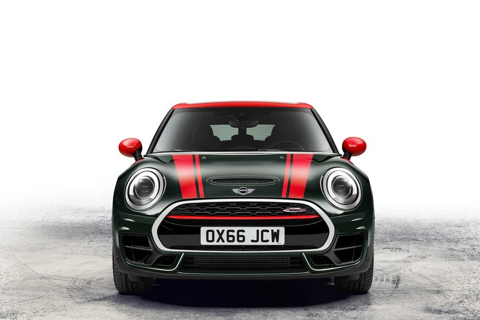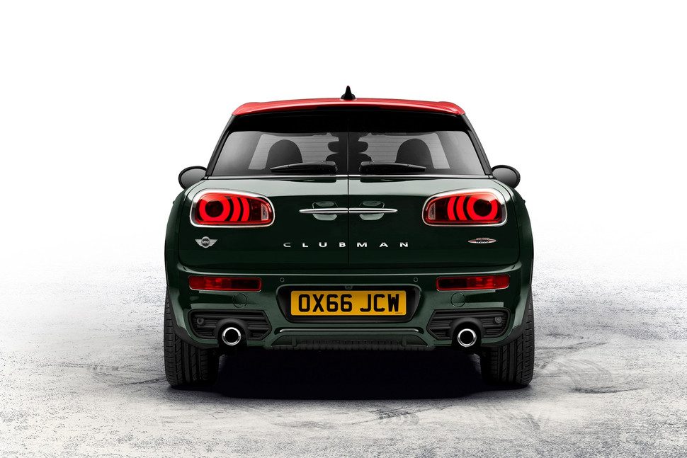 El JCW se ve más deportivo que un Clubman estándar gracias a un kit de cuerpo completo que incluye un parachoques delantero exclusivo y faldones laterales, un alerón montado en el techo, dos tubos de escape cromados, y llantas de aleación de 18 pulgadas envueltas en neumáticos Bridgestone. La inspiración continúa en el interior, con asientos de cubo para los pasajeros delanteros, costuras en contraste de color rojo, y un nuevo indicador de velocidad con las gráficas de una bandera a cuadros.