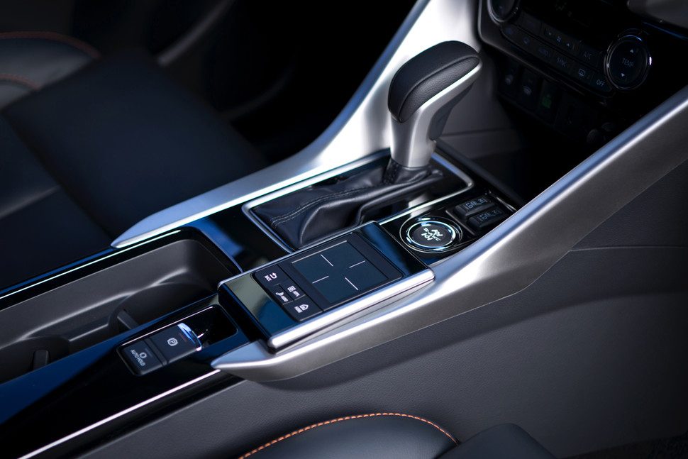 Las líneas angulares que definen la carrocería también están presentes en la cabina. Y, a primera vista, parece que Mitsubishi ha descubierto que la elaboración de un interior más agradable es clave para atraer compradores de vuelta a sus concesionarios. El Eclipse Cross ofrece una consola central de dos partes, enmarcada por un acabado de plástico gris con acentos negros brillantes, así como una pantalla táctil horizontal que ejecuta un nuevo sistema de información y entretenimiento llamado Smartphone Link Display.