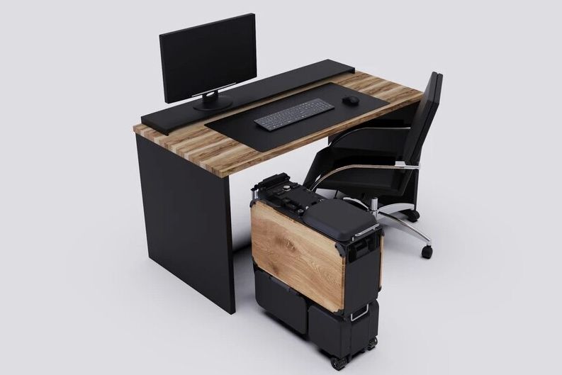 Tal como se ve en la imagen y en el video, al estar guardada no parece más que un gabinete de computadora un poco más grande de lo normal. Y por sus terminaciones tipo madera, incluso podría pasar como un mueble más dentro de casa.