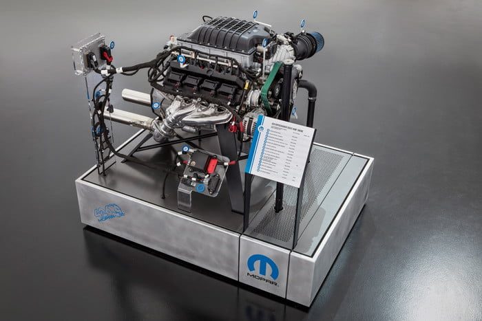 El bloque de aluminio es el mismo de los vehículos de competición que dominaron la serie Factory Stock Showdown de la NHRA y ostenta pistones forjados de 4,125 pulgadas y 4.0 pulgadas de carrera, un supercargador mejorado con un rotor de alta eficiencia montado en el bloque de aluminio, lo que proporciona un gran ahorro de peso, detalló FCA en un comunicado de prensa.
