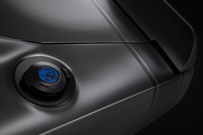 Según detalló FCA, “los parachoques delanteros y traseros de fibra de vidrio personalizados han sido aligerados y estrechados para que queden más integrados en el diseño exterior. El divisor frontal en fibra de vidrio, hecho a medida, está inspirado en el del Demon, mientras que el spoiler trasero está basado en el del moderno Charger R/T”.