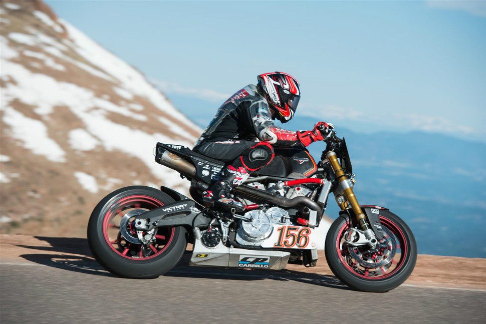 Victory Motorcycles tuvo dos ganadores en el Pikes Peak International Hill Climb 2016: la eléctrica Empulse RR, pilotada por el editor de Cycles World, Don Canet, y la motocicleta a gasolina Project 156, pilotada por Jeremy Toye. Después de ganar sus respectivas clases, se ubicaron en el segundo y tercer lugar de la clasificación general.