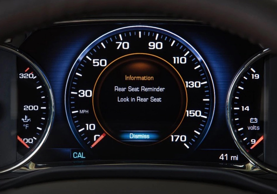 Por ejemplo, el sistema de General Motors monitorea las puertas traseras y se activa si una de ellas se abre o cierra poco antes de que arranque el motor. Más tarde, cuando este se apaga, el vehículo emite cinco campanadas y muestra un mensaje en el grupo de instrumentos que dice «Recordatorio del asiento trasero” o “Mire el asiento trasero».