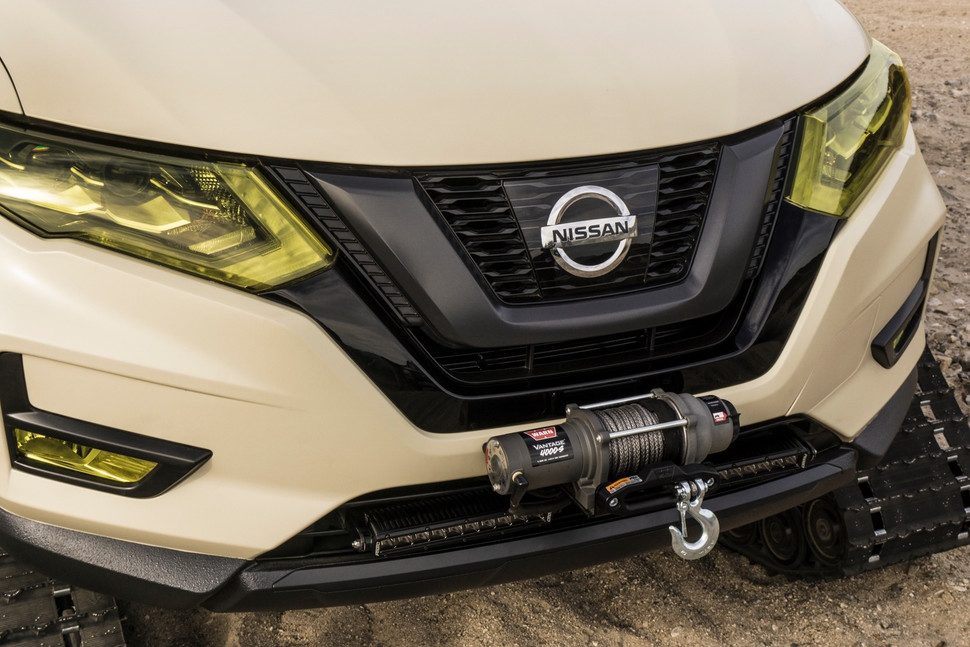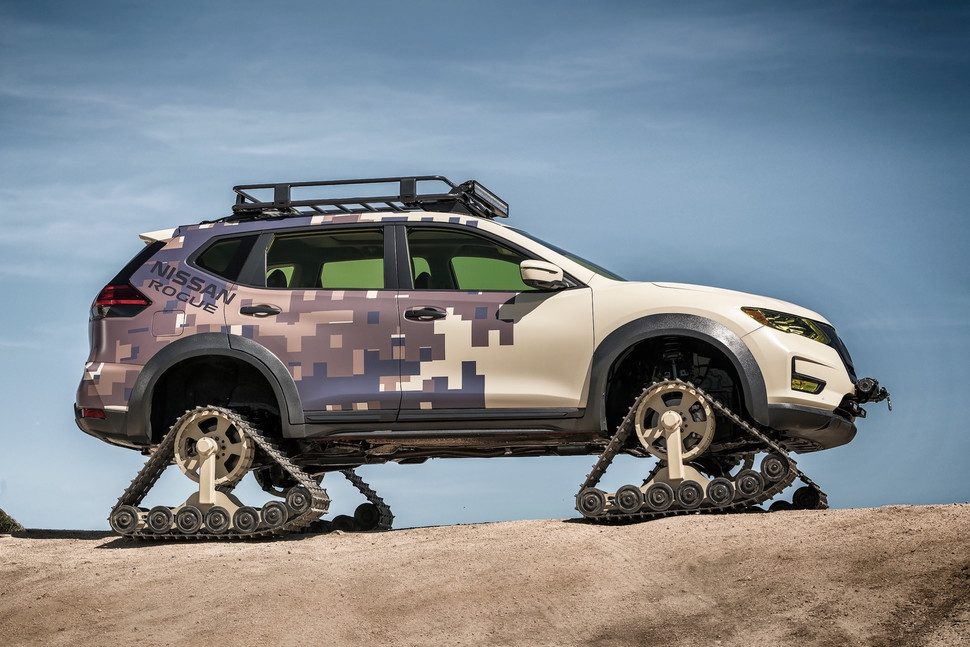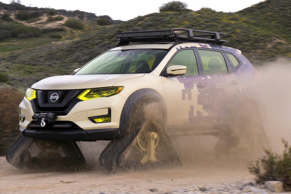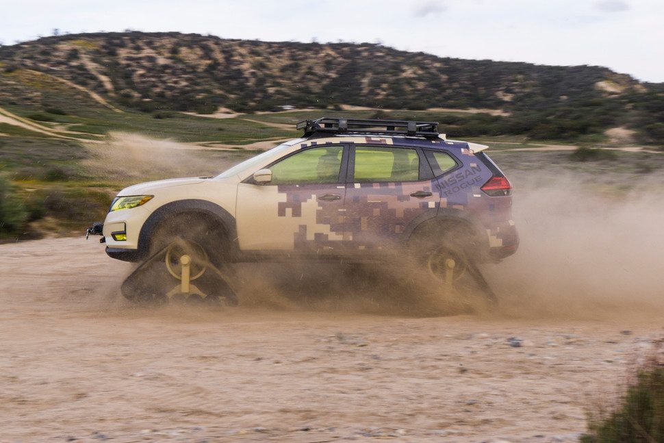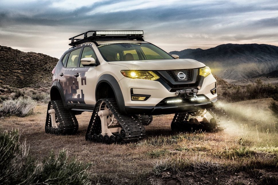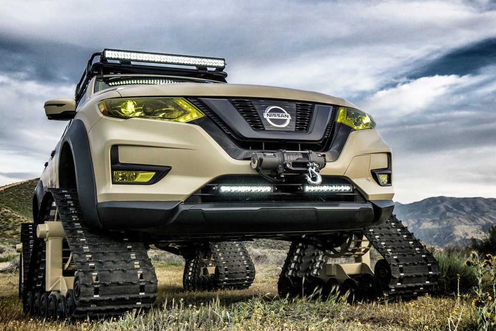 El Nissan Rogue Trail Warrior es un vehículo de seguimiento único que se estrenará esta semana en el Salón del Automóvil de Nueva York. Nissan lo ha fabricado con la única intención de promover el Rogue 2017, que viene con una serie de cambios de estilo y de tecnología, además de una nueva opción de tren de potencia híbrido. Eso sí, las nuevas opciones del Rogue no incluyen las cadenas-oruga, lamentablemente.