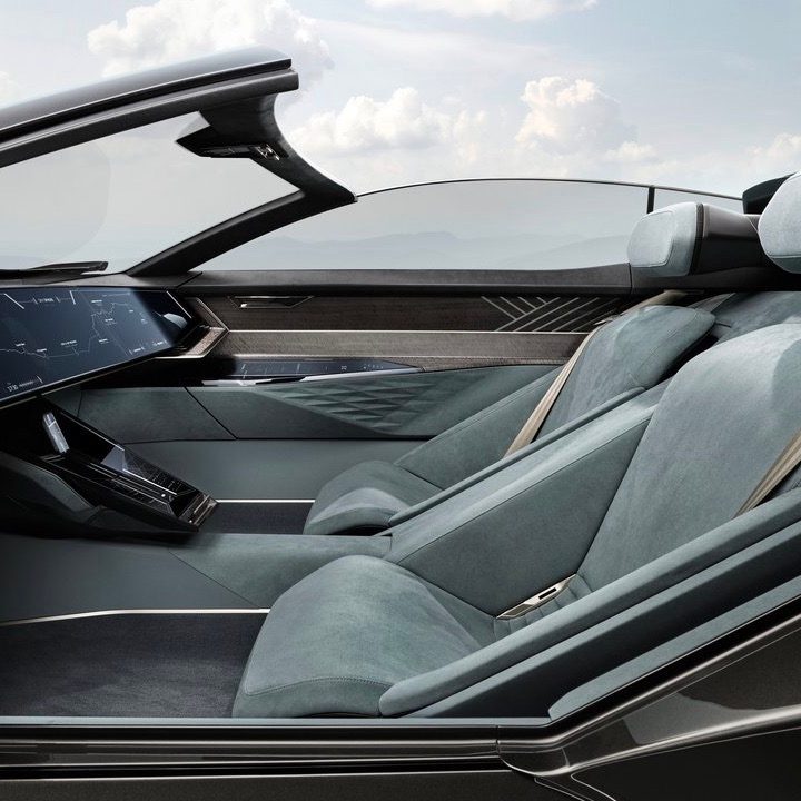 La cabina del Skysphere está cubierta de una microfibra ecológica Agave Blue y sus asientos están tapizados en cuero vegano. Según Audi, el diseño del interior del vehículo rinde homenaje a la zona de Malibú, en California, que alberga el centro de diseño de Audi donde se creo el Skysphere.