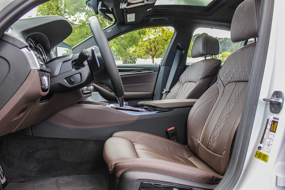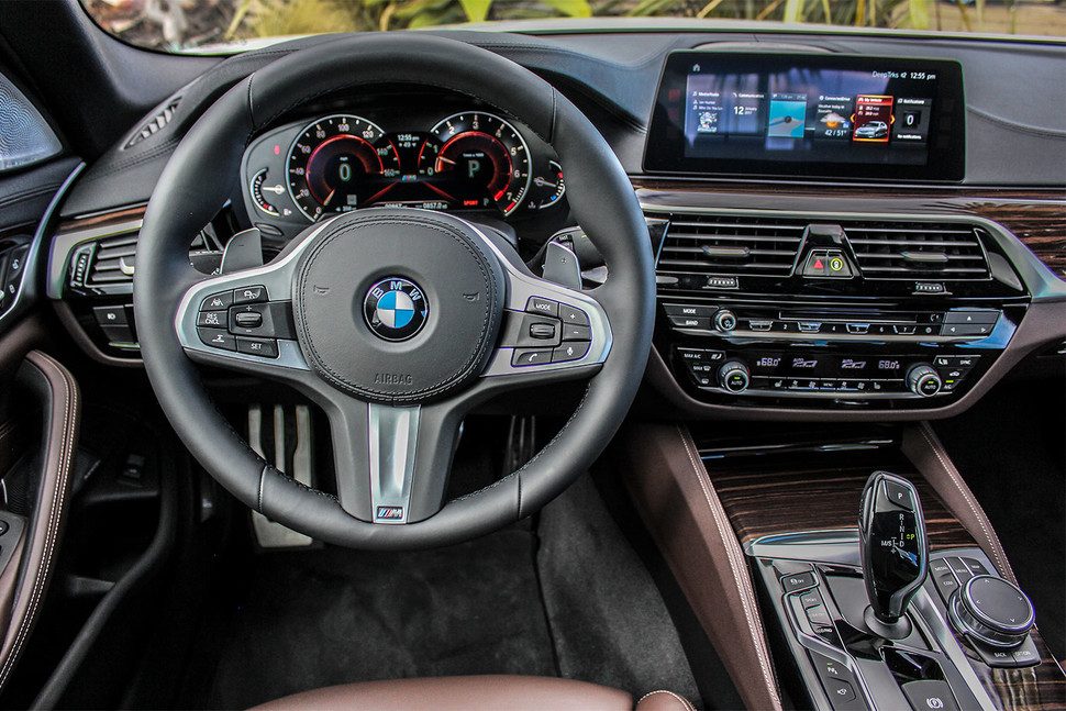 Además de unas actualizaciones de diseño sutiles, el Serie 5 toma prestadas muchas de las avanzadas tecnologías de su hermano “insignia”, el Serie 7, incluyendo aquí el control por gestos, un sistema de entretenimiento con pantalla táctil de 10.25 pulgadas, y un grupo de instrumentos digitales. A diferencia de sus competidores, BMW combina funciones analógicas y digitales dentro del panel de instrumentos, creando un efecto visual único. El infotainment, por otro lado, es de última generación. Una nítida exhibición de pantallas interactivas y configurables muestran el tráfico en tiempo real, el tiempo, la telemetría, los medios, y la información de navegación. Estas pantallas interactivas se pueden mover para dar prioridad a los datos que el conductor considere más útiles.