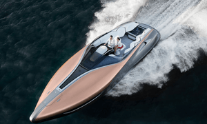 El Lexus Sports Yacht de 42 pies está construido en plástico reforzado con fibra de carbono (CRFP), un material utilizado en autos de carreras y deportivos.