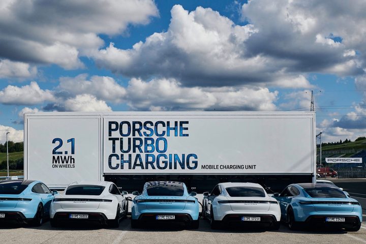 Construyó unos camiones de carga rápida que pueden recargar la energía de hasta 10 Taycan al mismo tiempo y a máxima velocidad. Además una sola unidad de almacenamiento de energía alcanza para hasta 30 automóviles Taycan.