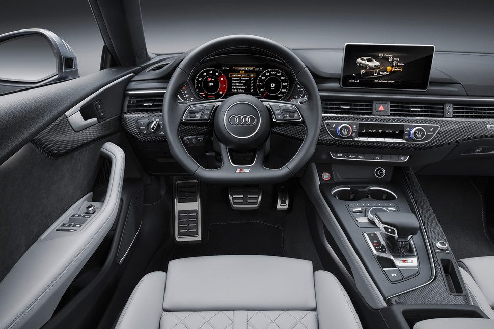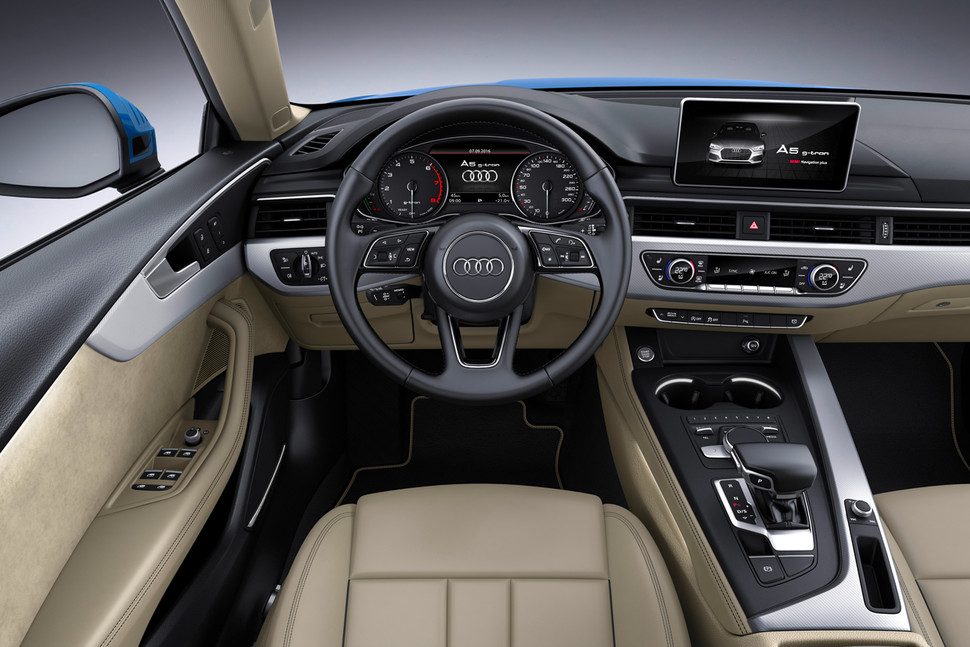 En su interior, el A5 Sportback es más amplio, con más tecnología, y más lujoso que nunca. Cuenta con una pantalla de alta resolución en la parte superior del salpicadero, programada para ejecutar el último sistema de información y entretenimiento de Audi. Además, está disponible con un panel de instrumentos totalmente digital y configurable, el cual se destaca como una de las unidades más modernas de su tipo en toda la industria. Los compradores que quieran estar siempre conectados pueden pedir un cargador de teléfono móvil y Wi-Fi incorporado por un suplemento extra.