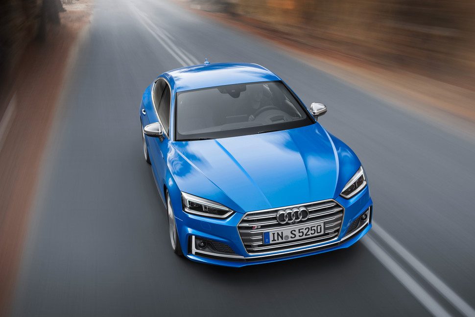 El S5, de aspecto más musculoso, ocupa el siguiente peldaño en la jerarquía. Cuenta con un motor V6 de 3.0 litros con turbocompresor que genera 354 caballos de fuerza y 368 libras-pie de torque, potencia suficiente como para alcanzar las 60 mph de una parada en 4.7 segundos. Un modelo aún más rápido, el RS 5, completará la alineación en un tiempo más.