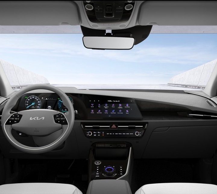 El interior también fue completamente rediseñado al estilo minimalista, recordándonos que el lujo radica tanto en el uso de materiales costosos, en apariencia escasos en el nuevo Niro, como en un diseño elegante y carente de excesos que al nuevo Niro le sobra. Su tablero de instrumentos y controles, con énfasis en la horizontalidad, usa una pantalla en modo de paisaje que alberga tanto el cuadro de instrumentos como el sistema de infoentretenimiento, y otros controles suplementarios; es similar a la que encontramos en la nueva Sportage.