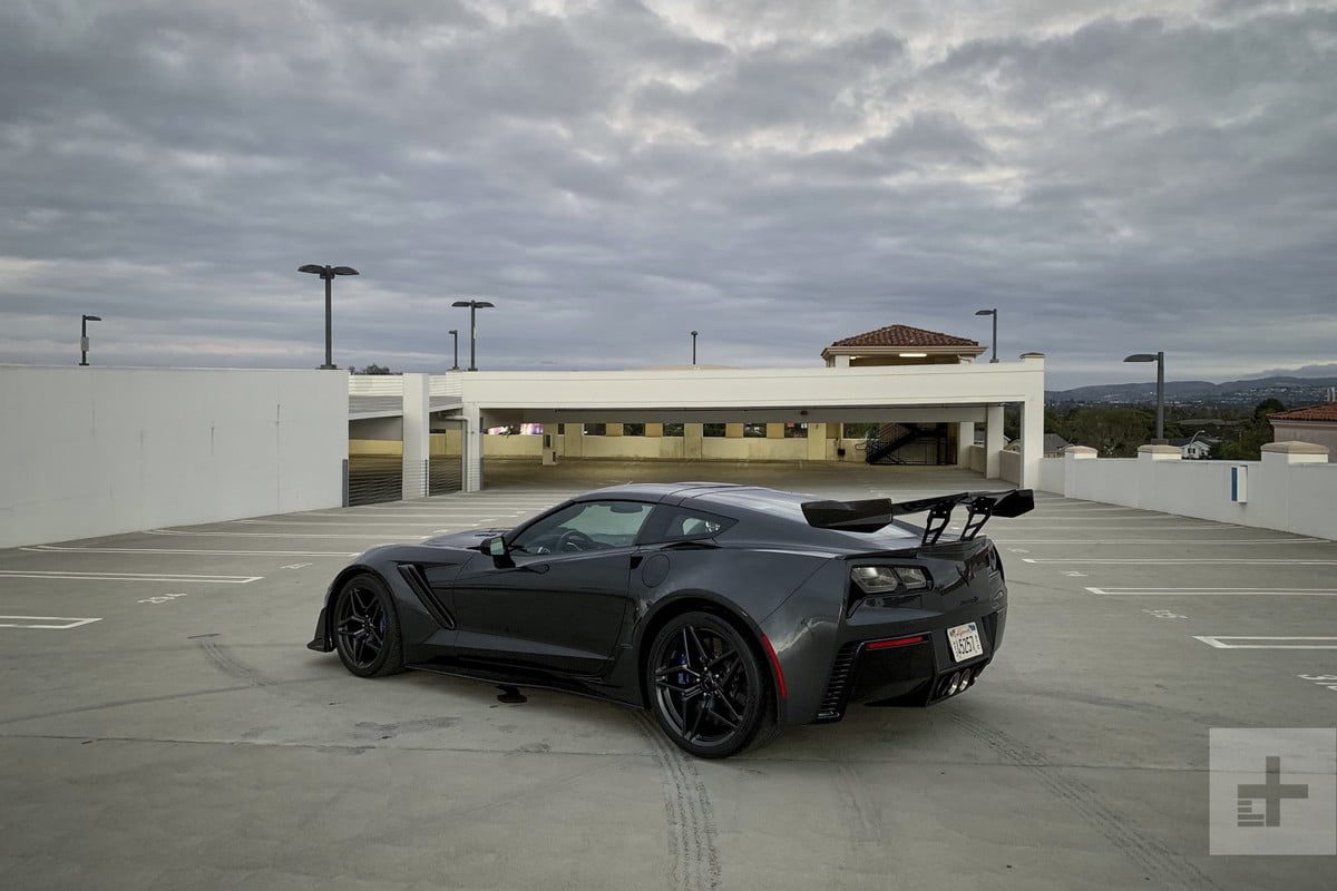 Luego está el enorme alerón trasero, un elemento del paquete ZTK, que también cuenta con aletas para el divisor delantero y los neumáticos Michelin Pilot Sport Cup 2. A pesar de la justificable reticencia, el ala ajustable del ZR1 simplemente funciona.