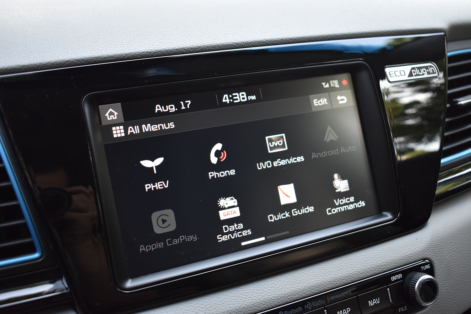 El fabricante surcoreano ofrece como equipamiento estándar un sistema de infoentretenimiento con pantalla táctil de siete pulgadas, compatible con Apple CarPlay y Android Auto. El EX Premium trae una de ocho pulgadas con navegación y un segundo monitor TFT para los instrumentos de siete pulgadas. Los puertos USB, auxiliares y de 12 voltios se encuentran en la base de la consola central, junto con la plataforma de carga inalámbrica que ofrecen los modelos EX Premium. Un segundo puerto USB, disponible solo para cargar, está oculto en la consola central.