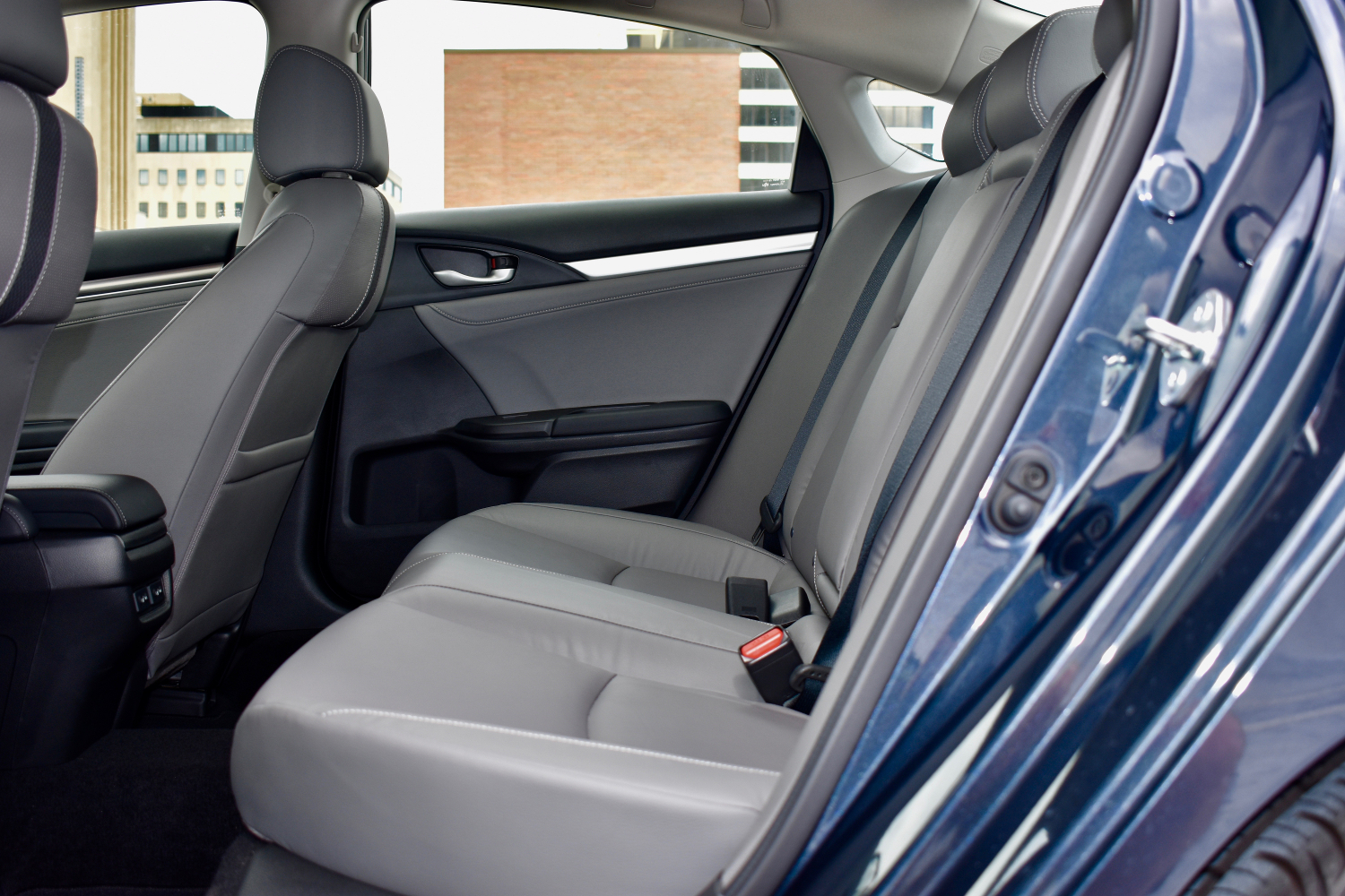 Un exterior elegante a menudo confabula contra el volumen interior, pero no es el caso. Las dimensiones son consistentes respecto otros sedanes compactos, aunque la línea baja del techo parece haber tenido un impacto en el espacio para la cabeza, que está por debajo del promedio del segmento. El Civic tiene más lugar en el maletero que el Volkswagen Jetta, pero no tanto como el Kia Forte (Cerato) o el Nissan Sentra.