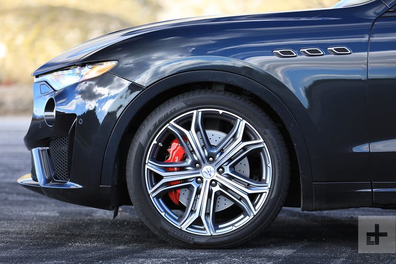 Los rines de 20 pulgadas son estándar en el GTS, pero los rines opcionales de 21 agregan un poco de dramatismo visual y ayudan a resaltar la gran potencia de frenado proporcionada por los cálipers de seis pistones y sus discos de 15 y 13 pulgadas.