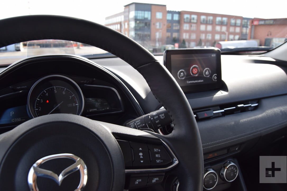 La CX-3 se parece más a un automóvil que a una SUV en las curvas. En lugar de ofrecer un sistema que te permita ajustar el sistema AWD según el terreno o el clima, Mazda colocó un botón Sport. Eso es una prueba de que la CX-3 es placentera cuando la carretera se pone sinuosa.