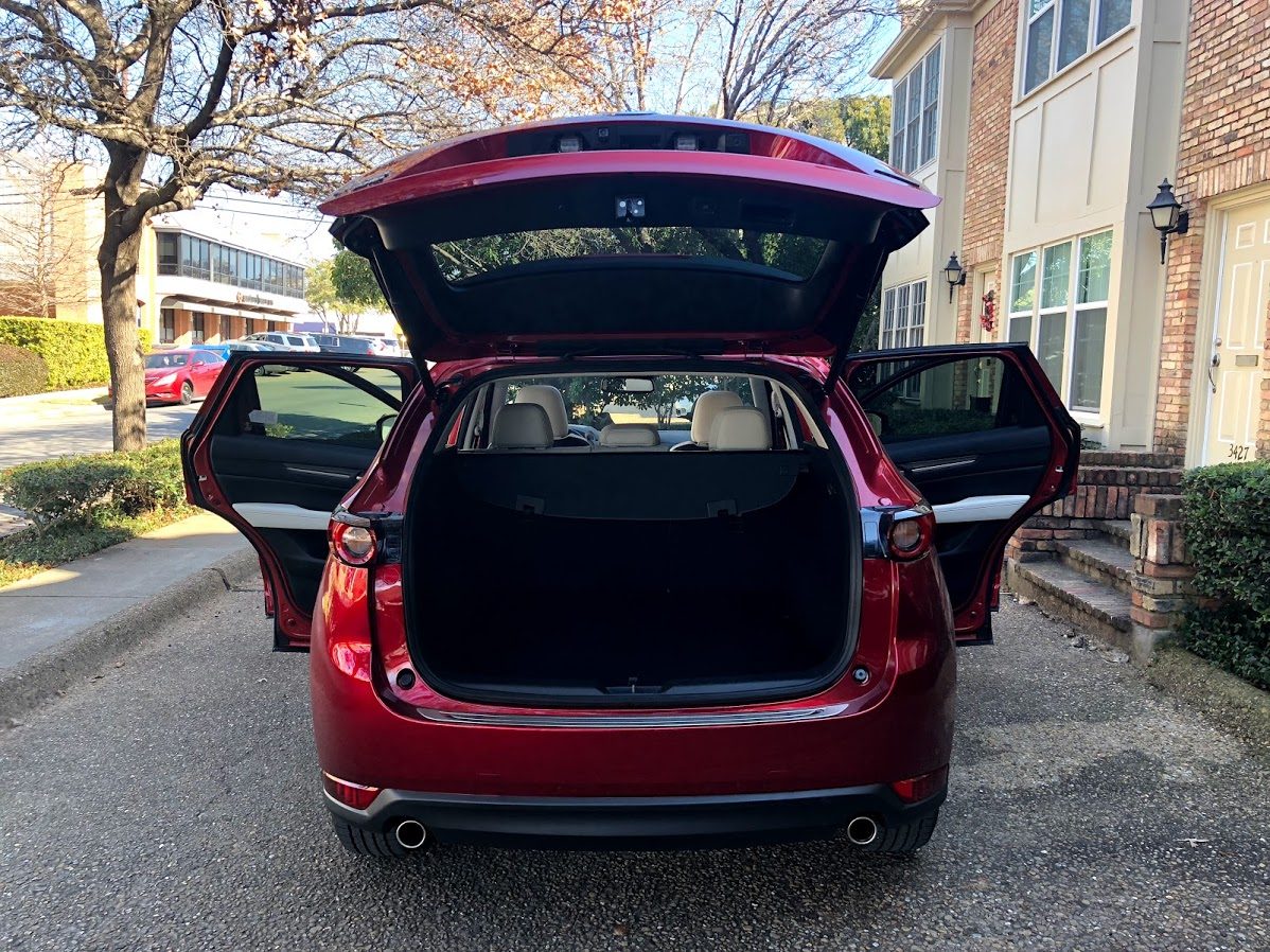 El espacio entre los asientos delanteros y traseros es otra cosa que imaginamos que sería mejor, teniendo en encuentra que la CX-5 es la versión media de las CUV de Mazda. La CX-9 es la más grande y una de mis favoritas, y la CX-3 es la más pequeña, aunque todavía no la hemos manejado.