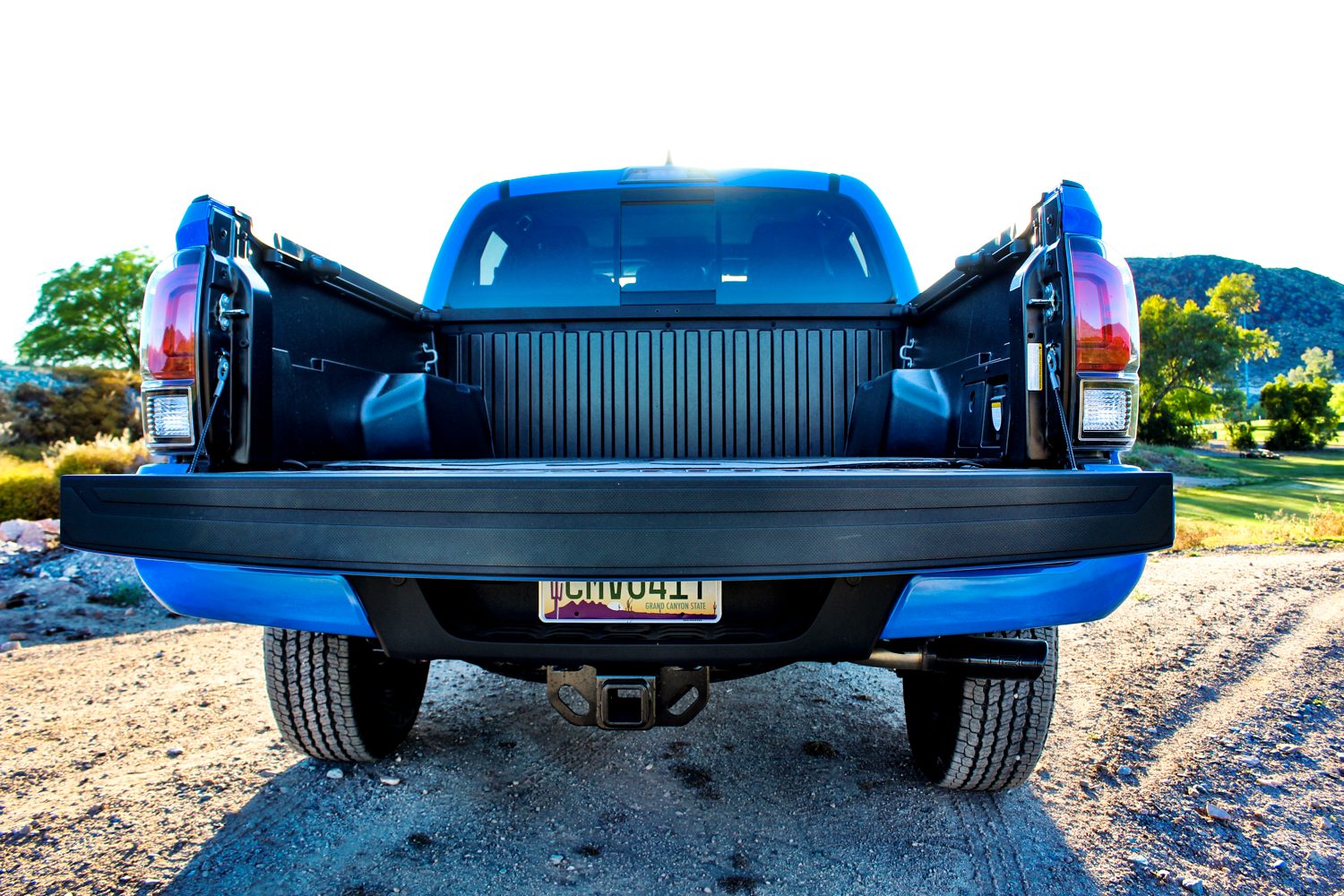 Hablando justamente de tecnología: la cabina de la Tacoma es más bien funcional, y no tan lujosa como la de sus rivales Ford Ranger o la Chevy Colorado. En cuanto a tecnología, cuenta con el anticuado sistema de infoentretenimiento Entune de Toyota, el cual no es compatible con Apple Carplay ni Android Auto. Nos gustó que cuente con cargador inalámbrico, al igual que sea la primera pickup que en la que puedes montar tu cámara GoPro para grabar todas tus aventuras al volante. Cuenta además con dos puertos USB y una toma de corriente en la caja de carga. Su cabina cómodamente sienta a cuatro personas, aunque la segunda fila es un poco apretada y sin mucho espacio parta estirar las piernas. Bajo de los asientos traseros hay compartimentos bastante útiles para guardar artículos de valor o herramientas.