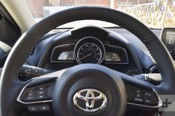 Con los 106 caballos de fuerza del motor de cuatro cilindros de 1.5 litros derivado de Mazda, llevar el auto a la velocidad de la carretera es una prueba de paciencia. El Yaris puede ser un peso ligero, inclinando la balanza a menos de 2,500 libras (1,133 kilos), pero aplastar el acelerador en el piso se traduce en poco movimiento y mucho ruido. Lo que sí obtiene es una clasificación de hasta 32 millas por galón en la ciudad (13.6 kilómetros por litro), 40 mpg en la carretera (17 km/l) y 35 mpg combinados (14.8 km/l), lo que es bueno para el segmento.