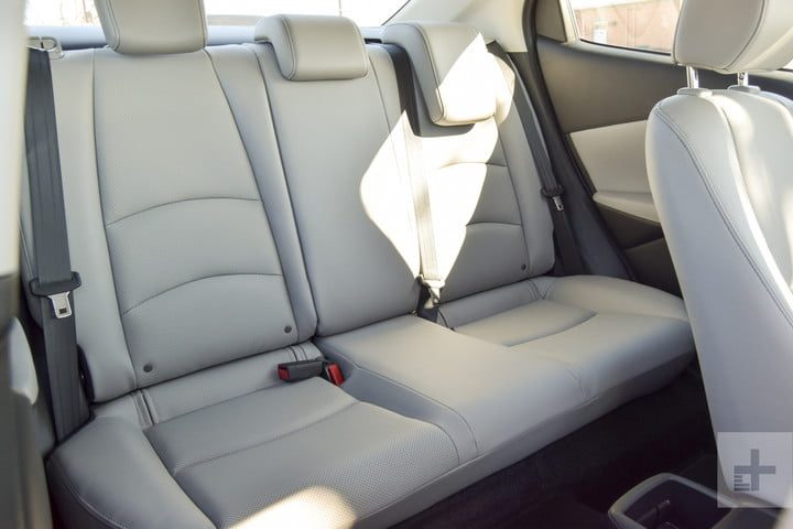 El mayor problema, sin embargo, es el espacio del asiento trasero. Con el asiento del conductor en una posición aceptable para adaptarse a nuestro tamaño de 5’10” (178 centímetros), nuestras rodillas se frotaban contra el respaldo del asiento delantero. ¿Cómodo? Realmente no. ¿Realizable? Sí, absolutamente. Pero no querrás estar allí sentado por más de 20 minutos.