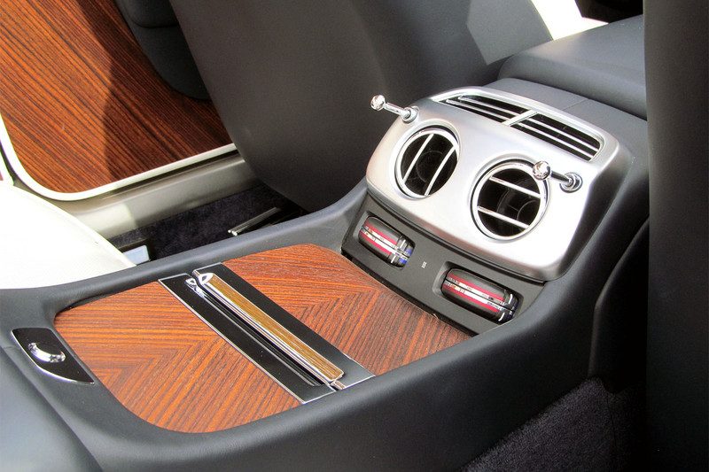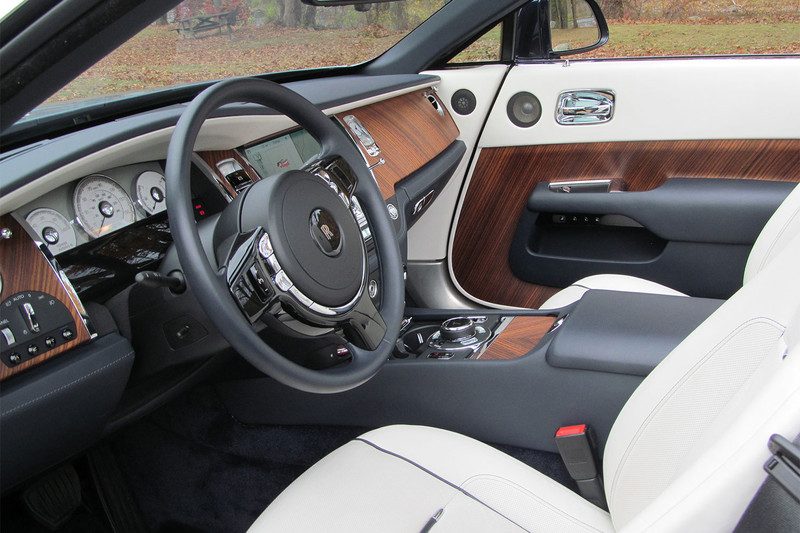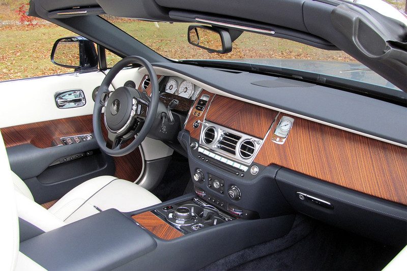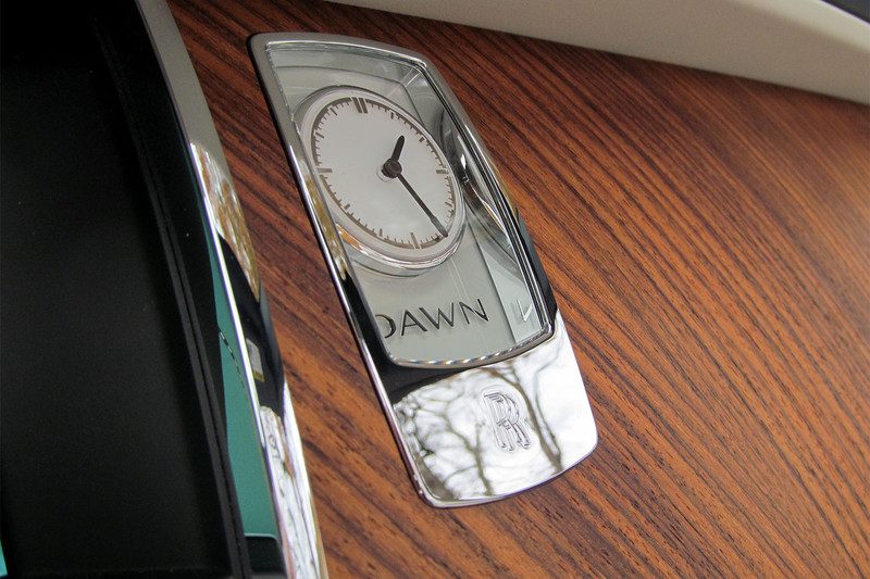 En una época en la que los nuevos vehículos de lujo bombardean a sus conductores con características tecnológicas que no son necesariamente útiles, el Dawn se muestra fantásticamente simple. Una pantalla de 10.25 pulgadas se esconde detrás de un panel de madera en el centro del salpicadero, y se controla a través de un botón giratorio en la consola central, rodeado de otros útiles botones que te permiten saltar a diferentes menús. La configuración parece bastante similar al sistema iDrive de BMW, pero es más aerodinámica.
