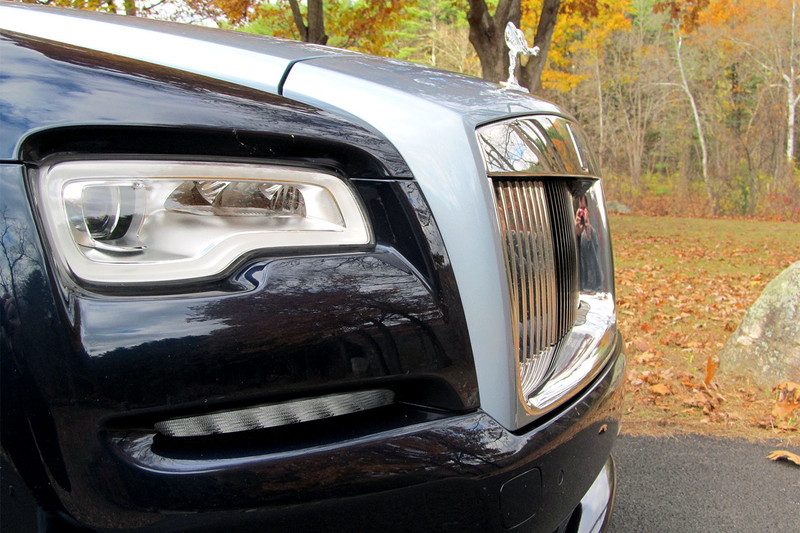 El Dawn ciertamente causa una muy buena impresión. Con su parrilla delantera enorme y vertical, y el ornamento de la mujer con los brazos extendidos hacia atrás (conocida como “El espíritu del éxtasis”), cualquier Rolls-Royce es de inmediato reconocible. Además, es un gigante: 17.34 pies de parachoques a parachoques, casi la misma longitud que un Chevy Tahoe.