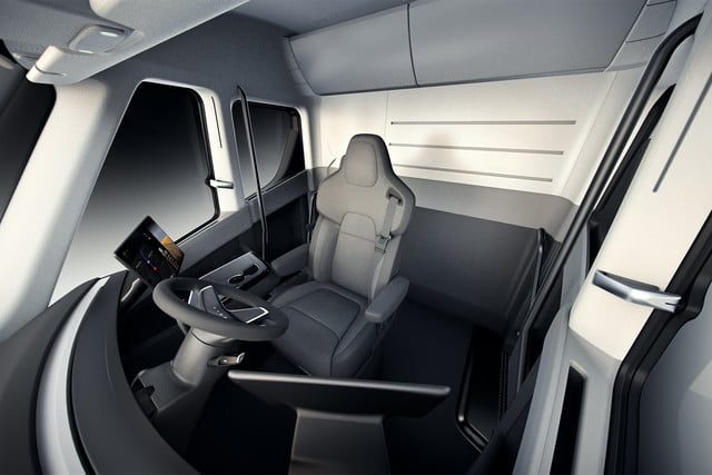 El Semi de Tesla no solo está diseñado para ser el semitruck más llamativo, eficiente o “cool” en la carretera; también se supone que es el más seguro. Cada Semi viene con sistema automático de frenado de emergencia, mantenimiento de carril y advertencia de colisión frontal como equipamiento estándar. Además, su sistema de infotainment se puede integrar “sin problemas” en los sistemas de la flota. Incluso el tren de potencia agrega seguridad. Debido a la disposición de la batería montada en el piso, el centro de gravedad es bajo, lo que reduce la posibilidad de volcar. Además, cada rueda tiene su propio motor independiente, y como el torque se distribuye a cada buje de forma independiente, el riesgo del “jackknifing” (“efecto tijera”) se reduce drásticamente.