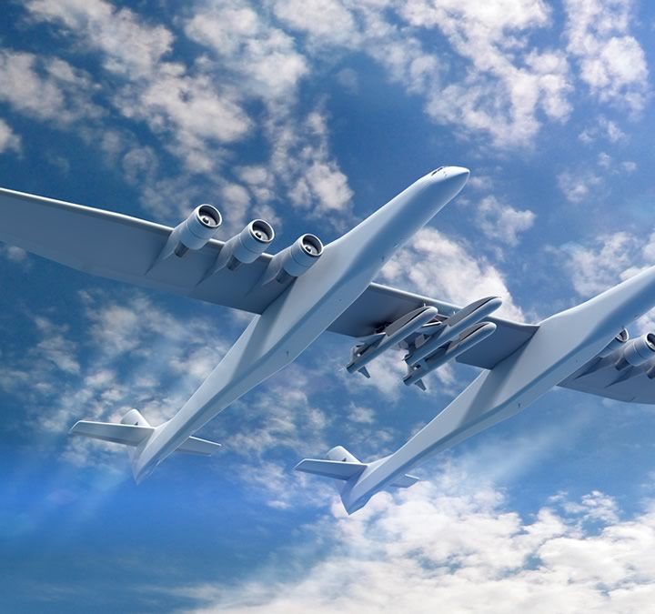 Diseñado por Vulcan Aerospace, una compañía lanzada en el 2015 por el cofundador de Microsoft, Paul Allen, Stratolaunch puede transportar una carga útil de hasta 550,000 libras, y utiliza seis motores típicamente utilizados por un Boeing 747.