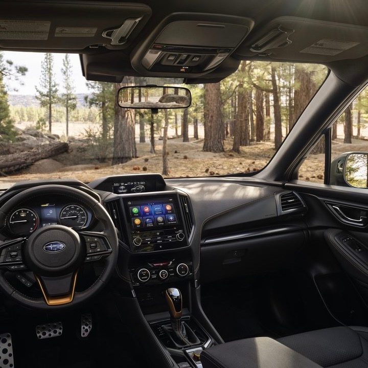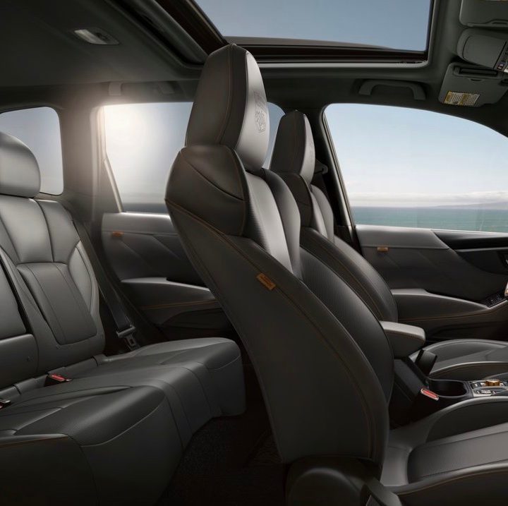 La cabina de la Forester Wilderness Edition mantiene la sencillez típica de Subaru, pero se distingue por sus asientos tapizados con el material sintético StarTex resistentes al agua con gráficos alegóricos al modelo en relieve y costuras especiales en color cobre. Las únicas opciones disponibles para los compradores del nuevo modelo son una pantalla táctil mejorada de 8 pulgadas con Subaru Starlink, navegación, un sistema de audio Harmon Kardon y un portón trasero eléctrico.