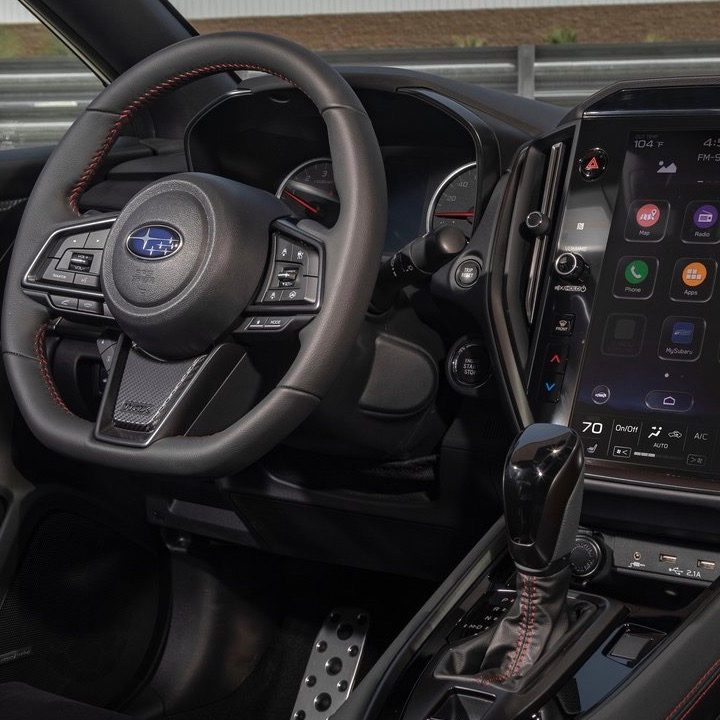 La cabina del WRX 2022 muestra un diseño completamente nuevo dominado por una pantalla de información y entretenimiento de 11.6 pulgadas, compatible con Apple CarPlay, Android Auto y conectividad Bluetooth estándar, y con opciones que incluyen un sistema de sonido Harman Kardon de 11 parlantes.