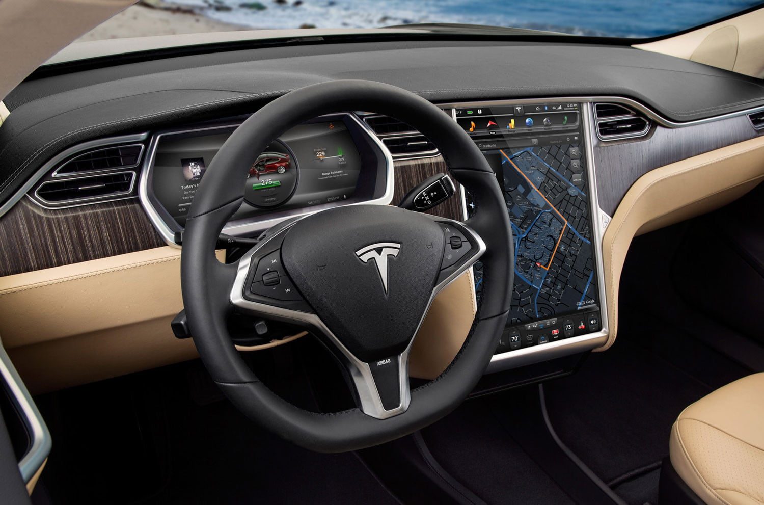 El Model S es futurista, pero se ve mucho más convencional por dentro que su hermano menor. Para empezar, los componentes como la pantalla táctil vertical, el grupo de instrumentos y las salidas de aire están exactamente donde se espera que estén. Dado que el Model S fue el primer auto producido masivamente por Tesla, la compañía obtuvo componentes de otros fabricantes, como el tablero Mercedes-Benz. También está comenzando a mostrar su edad, considerando que debutó en 2012.