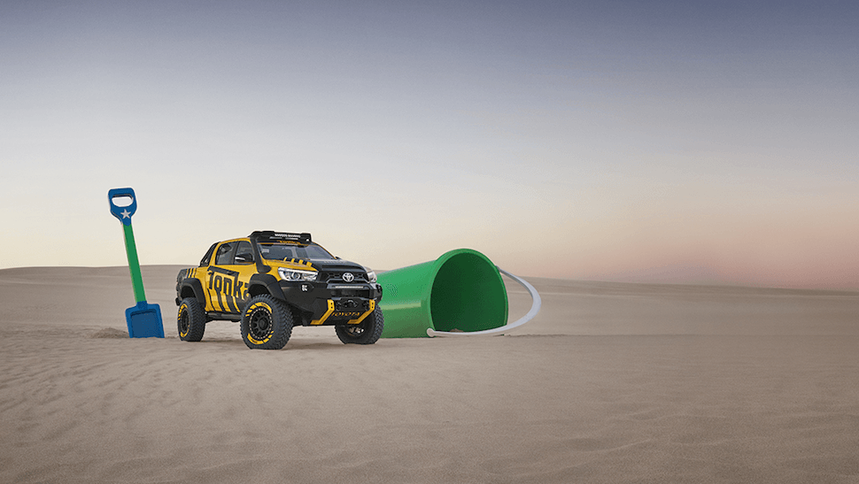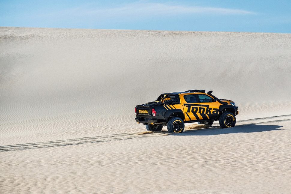 Uno de los aspectos más decepcionantes de crecer es darse cuenta de que los camiones Tonka con los que uno jugaba cuando niño no son “legales” en la calle. Posiblemente, los miembros de la división australiana de Toyota deben sentirse de la misma manera, porque han trabajado día y noche para transformar una camioneta HiLux en una Tonka real de gran tamaño.