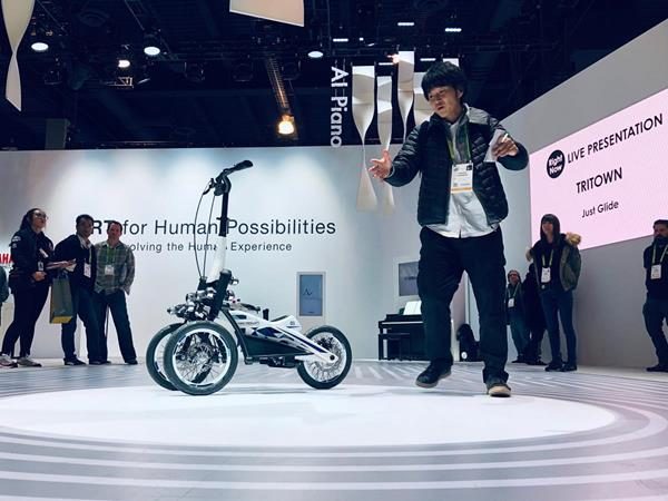 En nuestra cobertura de CES 2019 visitamos la exhibición de Yamaha Motors, donde pudimos ver de primera mano el TriTown de la marca japonesa. Aunque por ahora se trata de un vehículo conceptual, es un novedoso medio de transporte personal que tiene la característica de balancearse por sí solo gracias a su singular diseño de dos ruedas delanteras.