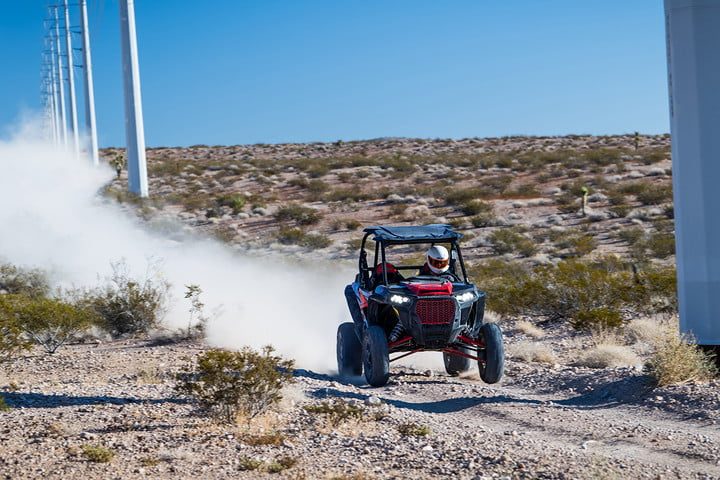 Tienes la opción de elegir entre distintas configuraciones. Los con amortiguadores de válvula de aguja básicos ya son bastante buenos. Dependiendo del terreno, eso puede ser todo lo que necesitas. Si quieres correr sobre polvo —como en el parque estatal Coral Pink Sand Dunes, en Utah—, el RZR lo hará como una seda. En las ásperas rocas del campo Mint 400, en las afueras de Las Vegas, ya no tanto. Puedes actualizarlo con los amortiguadores de derivación internos Fox con cinco zonas de compresión separadas, por aproximadamente $3,000 más, pero el RZR que deseas tiene la nueva suspensión activa de Dynamix de Polaris. Todo incluido con el motor turbo, te sale por $25,999 dólares.