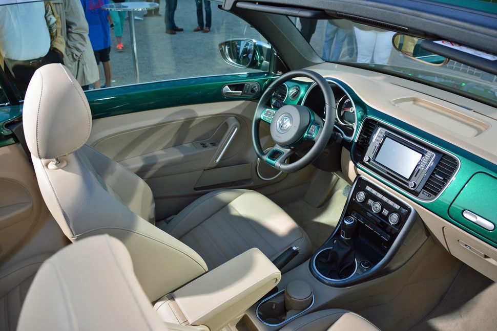 En el interior, el Escarabajo está equipado con un nuevo salpicadero, y un cuadro de instrumentos rediseñado que es mucho más claro y fácil de entender que el que estaba en los modelos anteriores. La consola central, así como parte de la radio y del volante, son ahora de un mismo color, lo que añade un estilo más retro a la cabina. Los fans del Beetle recordarán que el modelo original tuvo un tablero de instrumentos del mismo color que la carrocería durante décadas.