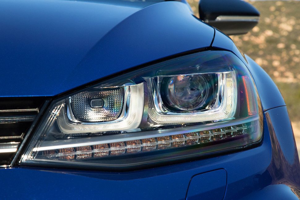 El VW Golf R se ofrece con una amplia variedad de detalles exclusivos. Junto con los parachoques diseño, los estribos y las llantas de aleación de 18 pulgadas, posee además detalles como los faros de serie bi-xenón con luz diurna LED, faros traseros también LED de color rojo oscuro, y un sistema de escape de doble flujo con cuatro tubos de escape cromados, los cuales acentúan visualmente el carácter deportivo del Volkswagen Golf R.