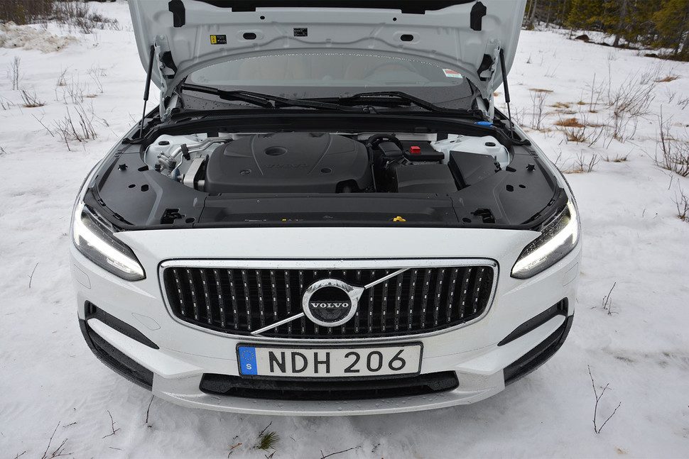 El V90 Cross Country sólo está disponible con un motor de cuatro cilindros de 2.0 litros de aluminio, turbo y sobrealimentado. Llamado T6, genera 316 caballos de fuerza a 5,700 rpm y 295 libras-pies de torque de 2,200 a 5,400 rpm. Potencia más que suficiente para llevarlo de 0 a 60 mph en seis segundos. Una suave transmisión automática de ocho velocidades distribuye la potencia a las cuatro ruedas.
