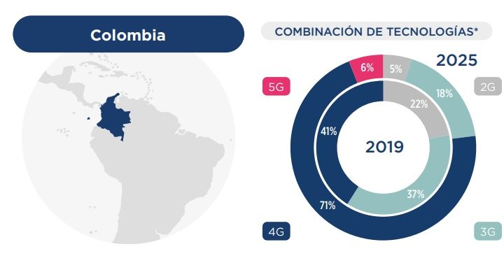 Dado que uno de los desafíos de Colombia es consolidar las redes 4G, es uno de los países que avanza con más lentitud en materia de 5G. El gobierno, a través del Ministerio de Tecnologías de la Información y Comunicaciones (Mintic), publicó un sobre las bandas de 5G se publicó en 2019.