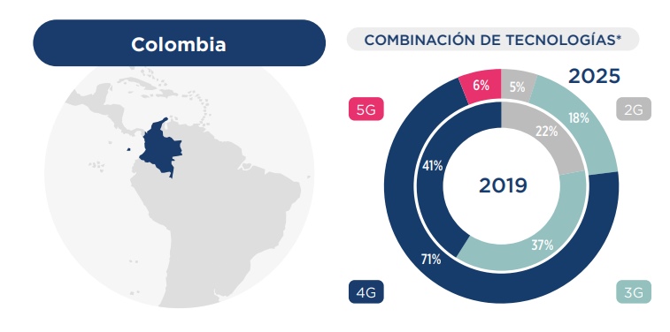 Dado que uno de los desafíos de Colombia es consolidar las redes 4G, es uno de los países que avanza con más lentitud en materia de 5G. El gobierno, a través del Ministerio de Tecnologías de la Información y Comunicaciones (Mintic), publicó un sobre las bandas de 5G se publicó en 2019.