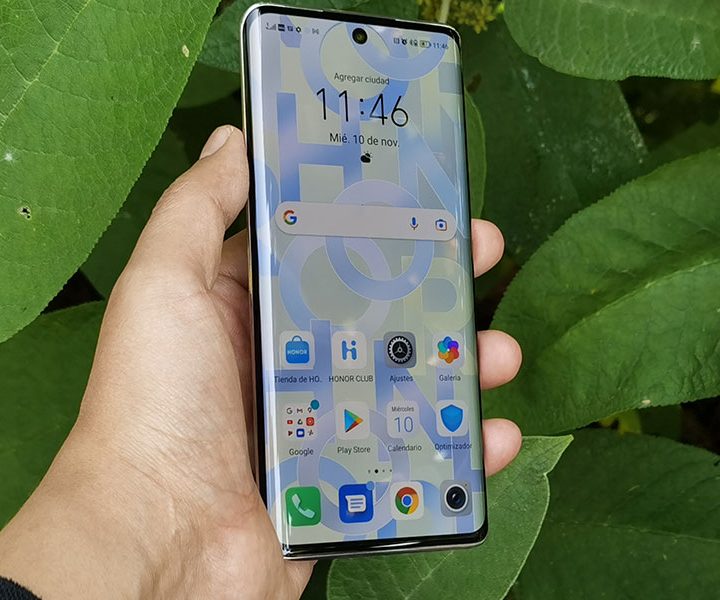 Honor optó por un panel OLED de 6.57 pulgadas que se “dobla” en los costados unos 75 grados, además de que cuenta con una resolución Full HD+ (2,340 x 1,080 pixeles) y puede mostrar 1,070 millones de colores, de acuerdo con la compañía. La pantalla está equipada con una frecuencia de actualización de 120 Hz (refresca su imagen 120 veces en un segundo), una característica que empieza a extenderse cada vez más.