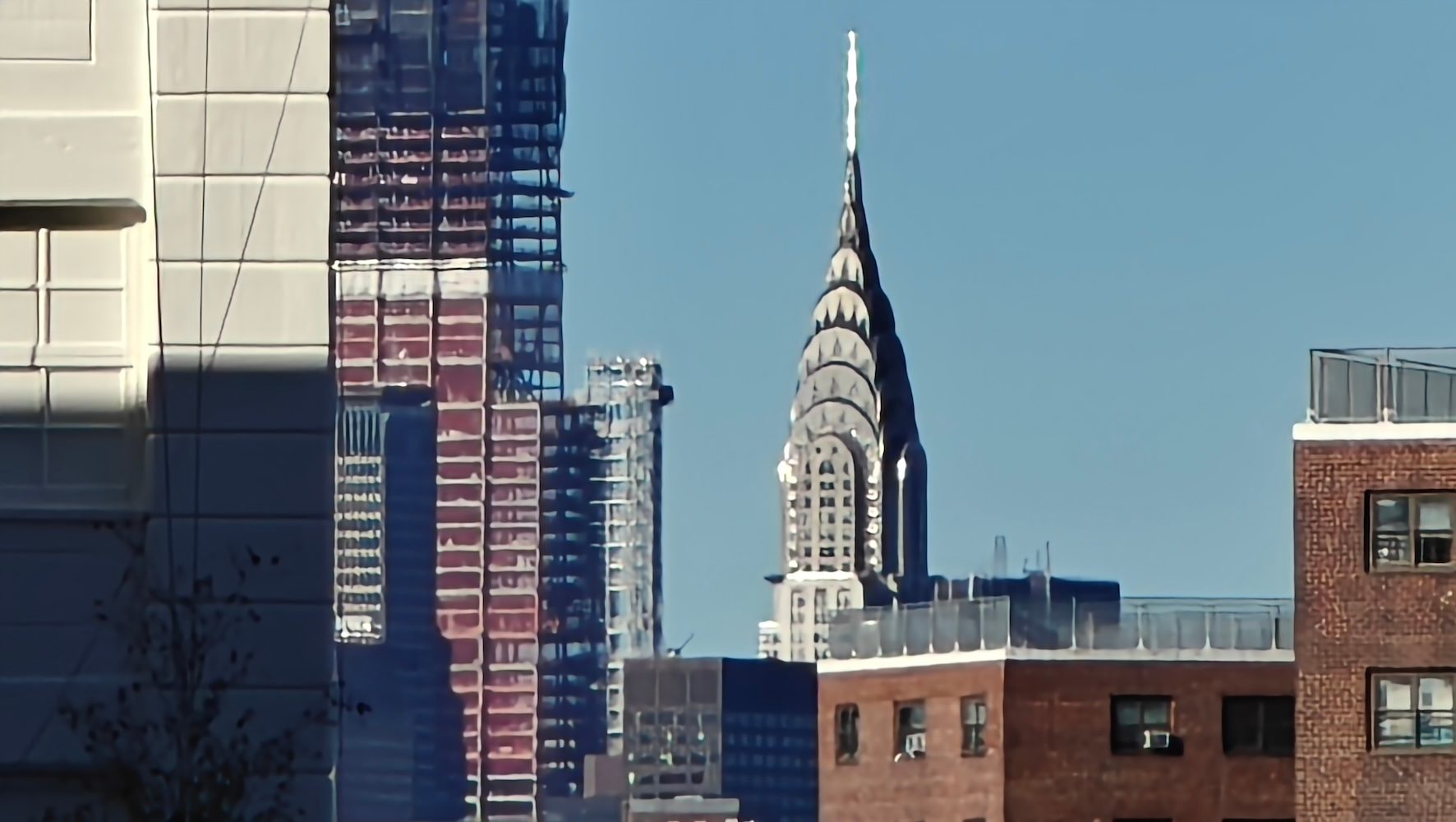 El zoom en los teléfonos inteligentes… Ya se sabe. Es divertido tenerlo, y a veces consigues imágenes bastante asombrosas. Pero, cuando lo llevas al máximo, nunca obtienes una imagen perfecta. Por ejemplo, la siguiente secuencia, tomada desde Downtown Brooklyn hacia Manhattan, más específicamente, hacia el Chrysler Building: