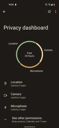Otra característica es que puedes ir al nuevo Panel de privacidad para verificar todos tus permisos. Ve a Configuración> Privacidad> Panel de privacidad para ver qué aplicaciones tienen qué permisos. Si estás utilizando un Samsung Galaxy, el Panel de privacidad se llamará Historial de uso de permisos, así que búscalo en Configuración> Privacidad.