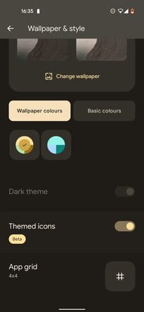 Paso 4: otra modificación que puedes hacer en Configuración> Fondo de pantalla y estilo es activar Iconos temáticos. Si activas esto, los íconos en tu pantalla de inicio y en otros lugares se colorearán o sombrearán de acuerdo con tu fondo de pantalla.