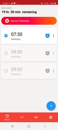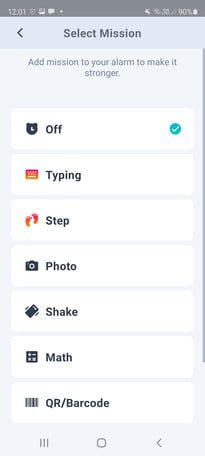 Alarm yes gratuita, pero puedes suscribirte a la versión Premium por $5 dólares mensuales para eliminar los anuncios y disfrutar de tareas adicionales, como Step, que requiere que sigas una serie de pasos para desactivar la alarma, Typing, que te pide que teclees varias citas motivacionales en tu celular para un inicio positivo del día.