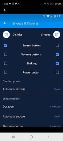 Sin embargo, las funciones snooze en Alarm Clock Xtreme son su mayor fortaleza. La app ofrece una serie de métodos snooze, incluyendo el botón snooze extra larto, presionando los botones laterales, sacudiendo el dispositivo. Sin embargo, si eliges snooze, puedes programar la app para reducir la duración de tiempo entre cada snooze, de manera que serás despertado con mayor frecuencia. Puedes elegir ser despertado por ringtones, música almacenada en tu dispositivo, o radio en línea y la aplicación puede mostrar los eventos desde tu calendario y también el pronóstico del clima para el día.