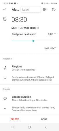 No hay seguimiento del sueño integrado y no usará una alarma inteligente para asegurarse de que dormiste lo suficiente, así que no es una imitación de la app Bedtime de Apple. Tiene una buena integración con Google Assistant Routine — puedes hacer que tu alarma active otros productos inteligentes en tu casa que estén conectados a tu ecosistema Google Home. Puedes crear una rutina matutina para encender las luces, activar la cafetera y ajustar el termostato y todo esto encenderá apenas apagues tu alarma.