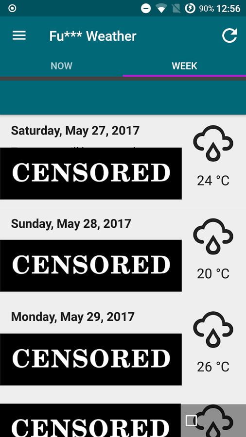 El clima desde una perspectiva menos seria. Fu*** Weather se autodescribe como una especie de aplicación realista, basándose en lo que podrías decir si te asomaras a ver cómo está el clima. Obviamente incluye algunas palabras ofensivas, así que si no te gustan las groserías esta aplicación no es para ti.